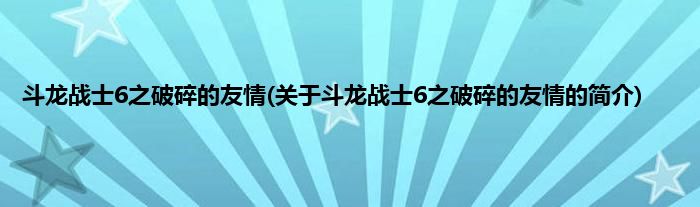 本文关于斗龙战士6之破碎的友情的简介就讲解完毕,希望对大家有所帮助。