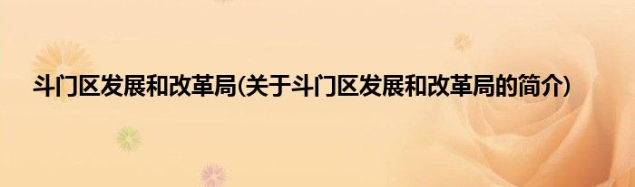 大家好,斗门区发展和改革局,关于斗门区发展和改革局的简介很多人还不知道,现在让我们一起来看看吧!