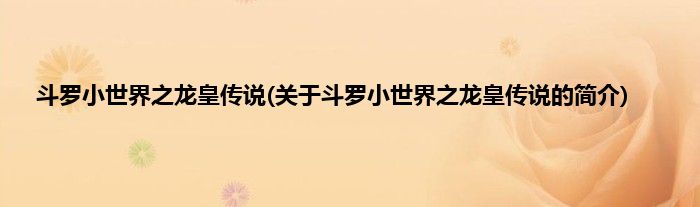 本文关于斗罗小世界之龙皇传说的简介就讲解完毕,希望对大家有所帮助。