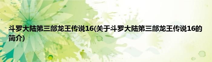 斗罗大陆第三部龙王传说16(关于斗罗大陆第三部龙王传说16的简介)