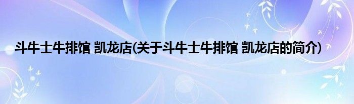 斗牛士牛排馆 凯龙店(关于斗牛士牛排馆 凯龙店的简介)