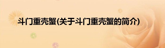 本文关于斗门重壳蟹的简介就讲解完毕,希望对大家有所帮助。