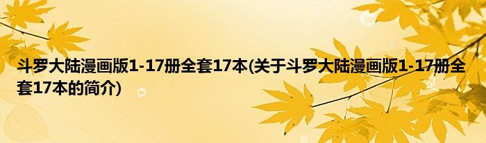 本文关于斗罗大陆漫画版1-17册全套17本的简介就讲解完毕,希望对大家有所帮助。