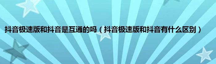 大家好,精选小编来为大家解答以上问题。抖音极速版和抖音是互通的吗,抖音极速版和抖音有什么区别很多人还不知道,现在让我们一起来看看吧!