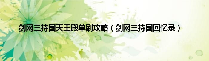 大家好,精选小编来为大家解答以上问题。剑网三持国天王殿单刷攻略,剑网三持国回忆录很多人还不知道,现在让我们一起来看看吧!