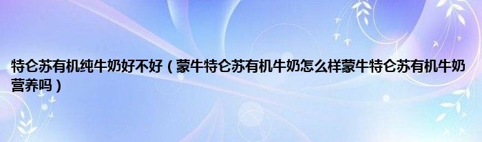大家好,小科来为大家解答以上问题。特仑苏有机纯牛奶好不好,蒙牛特仑苏有机牛奶怎么样蒙牛特仑苏有机牛奶营养吗很多人还不知道,现在让我们一起来看看吧!