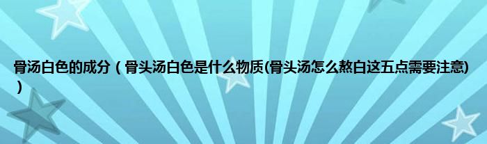 大家好,小科来为大家解答以上问题。骨汤白色的成分,骨头汤白色是什么物质(骨头汤怎么熬白这五点需要注意)很多人还不知道,现在让我们一起来看看吧!