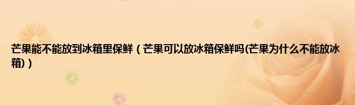 大家好,小科来为大家解答以上问题。芒果能不能放到冰箱里保鲜,芒果可以放冰箱保鲜吗(芒果为什么不能放冰箱)很多人还不知道,现在让我们一起来看看吧!