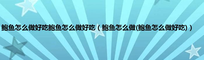 四、鲍鱼怎么做才软