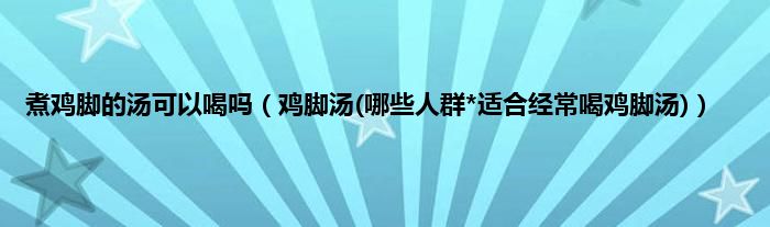 大家好,小科来为大家解答以上问题。煮鸡脚的汤可以喝吗,鸡脚汤(哪些人群*适合经常喝鸡脚汤)很多人还不知道,现在让我们一起来看看吧!