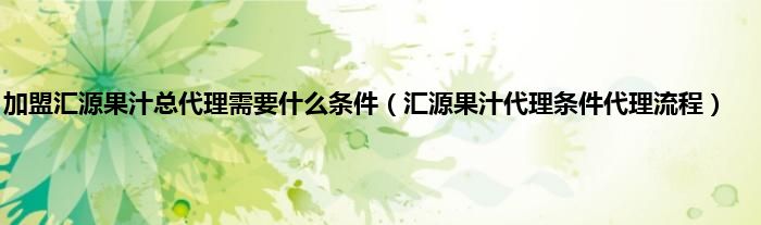 加盟汇源果汁总代理需要什么条件(汇源果汁代理条件代理流程)