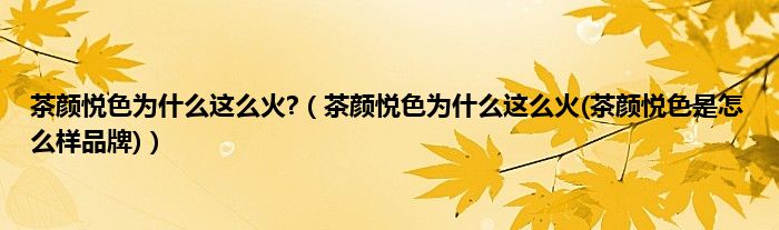 茶颜悦色为什么这么火?(茶颜悦色为什么这么火(茶颜悦色是怎么样品牌))