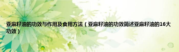 以下是对亚麻籽油的16大功效.的简要概述