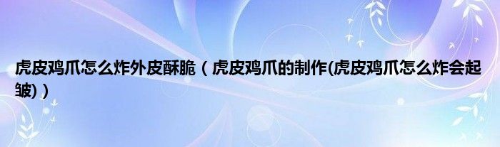 大家好,小科来为大家解答以上问题。虎皮鸡爪怎么炸外皮酥脆,虎皮鸡爪的制作(虎皮鸡爪怎么炸会起皱)很多人还不知道,现在让我们一起来看看吧!