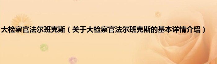 本文关于大检察官法尔班克斯的基本详情介绍就讲解完毕,希望对大家有所帮助。