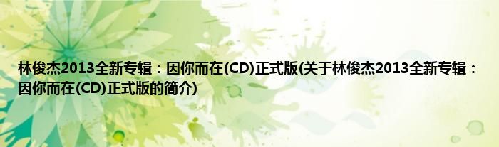 林俊杰2013全新专辑:因你而在(CD)正式版(关于林俊杰2013全新专辑:因你而在(CD)正式版的简介)