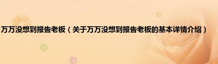 本文关于万万没想到报告老板的基本详情介绍就讲解完毕,希望对大家有所帮助。