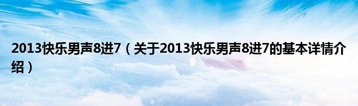 本文关于2013快乐男声8进7的基本详情介绍就讲解完毕,希望对大家有所帮助。