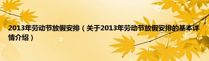 本文关于2013年劳动节放假安排的基本详情介绍就讲解完毕,希望对大家有所帮助。