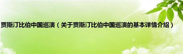 本文关于贾斯汀比伯中国巡演的基本详情介绍就讲解完毕,希望对大家有所帮助。