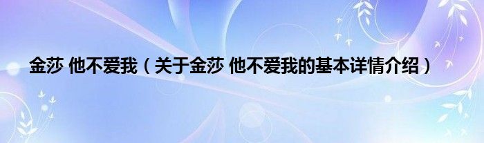 本文关于金莎 他不爱我的基本详情介绍就讲解完毕,希望对大家有所帮助。