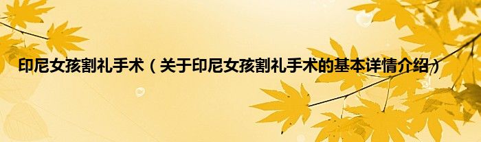 本文关于印尼女孩割礼手术的基本详情介绍就讲解完毕,希望对大家有所帮助。