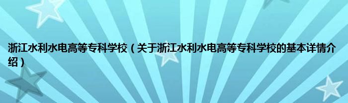本文关于浙江水利水电高等专科学校的基本详情介绍就讲解完毕,希望对大家有所帮助。
