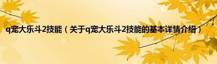 本文关于q宠大乐斗2技能的基本详情介绍就讲解完毕,希望对大家有所帮助。