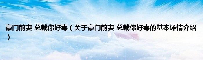 本文关于豪门前妻 总裁你好毒的基本详情介绍就讲解完毕,希望对大家有所帮助。