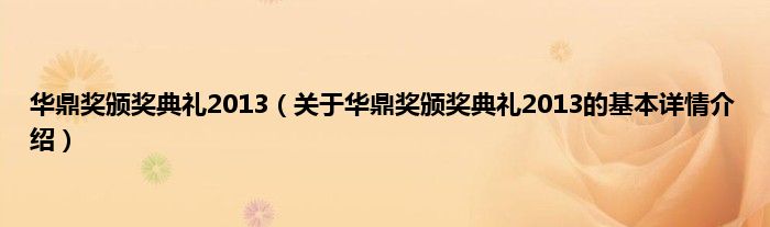 本文关于华鼎奖颁奖典礼2013的基本详情介绍就讲解完毕,希望对大家有所帮助。
