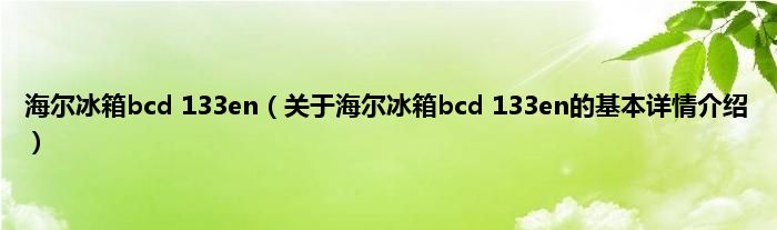 本文关于海尔冰箱bcd 133en的基本详情介绍就讲解完毕,希望对大家有所帮助。