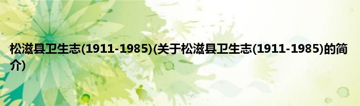 本文关于松滋县卫生志(1911-1985)的简介就讲解完毕,希望对大家有所帮助。