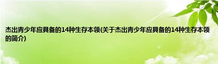 本文关于杰出青少年应具备的14种生存本领的简介就讲解完毕,希望对大家有所帮助。