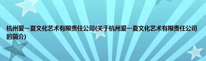 本文关于杭州爱一夏文化艺术有限责任公司的简介就讲解完毕,希望对大家有所帮助。
