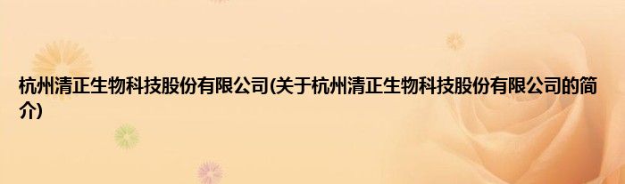 杭州清正生物科技股份有限公司(关于杭州清正生物科技股份有限公司的简介)