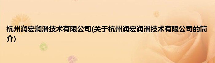 本文关于杭州润宏润滑技术有限公司的简介就讲解完毕,希望对大家有所帮助。