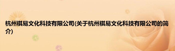 本文关于杭州棋易文化科技有限公司的简介就讲解完毕,希望对大家有所帮助。