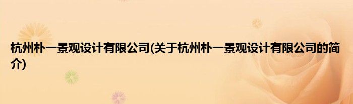 本文关于杭州朴一景观设计有限公司的简介就讲解完毕,希望对大家有所帮助。