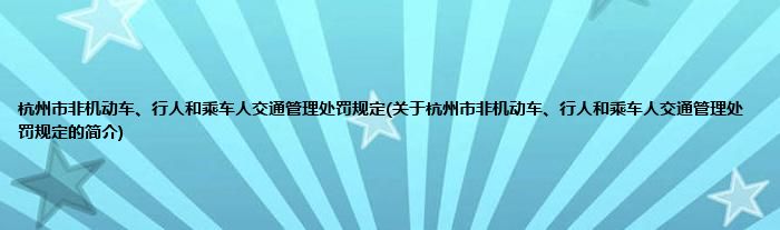 大家好,杭州市非机动车、行人和乘车人交通管理处罚规定,关于杭州市非机动车、行人和乘车人交通管理处罚规定的简介很多人还不知道,现在让我们一起来看看吧!