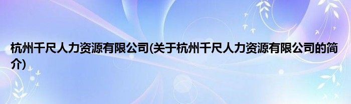 本文关于杭州千尺人力资源有限公司的简介就讲解完毕,希望对大家有所帮助。