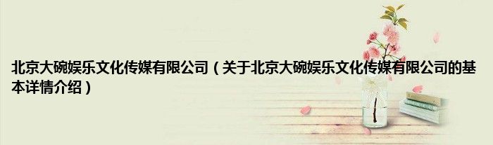 本文关于北京大碗娱乐文化传媒有限公司的基本详情介绍就讲解完毕,希望对大家有所帮助。