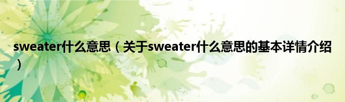 本文关于sweater什么意思的基本详情介绍就讲解完毕,希望对大家有所帮助。