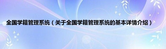 本文关于全国学籍管理系统的基本详情介绍就讲解完毕,希望对大家有所帮助。