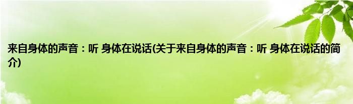 大家好,来自身体的声音:听,身体在说话,关于来自身体的声音:听,身体在说话的简介很多人还不知道,现在让我们一起来看看吧!