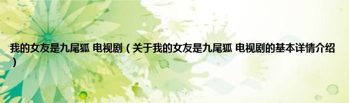 本文关于我的女友是九尾狐 电视剧的基本详情介绍就讲解完毕,希望对大家有所帮助。