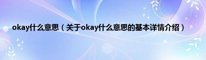 本文关于okay什么意思的基本详情介绍就讲解完毕,希望对大家有所帮助。