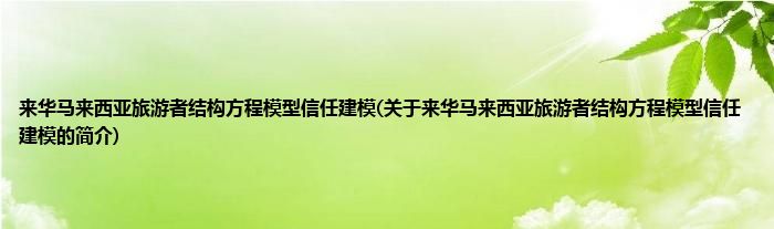 本文关于来华马来西亚旅游者结构方程模型信任建模的简介就讲解完毕,希望对大家有所帮助。