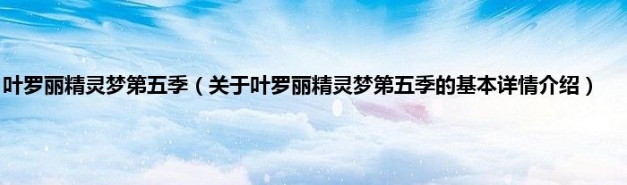 本文关于叶罗丽精灵梦第五季的基本详情介绍就讲解完毕,希望对大家有所帮助。