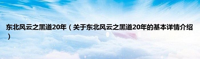 本文关于东北风云之黑道20年的基本详情介绍就讲解完毕,希望对大家有所帮助。
