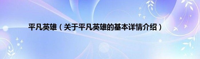 本文关于平凡英雄的基本详情介绍就讲解完毕,希望对大家有所帮助。
